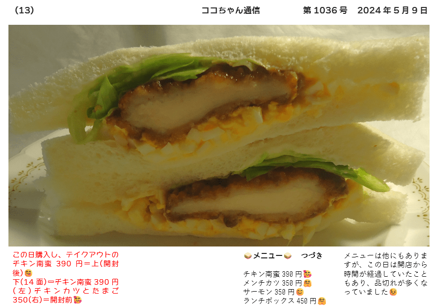 下(14面)=チキン南蛮390円(左)チキンカツとたまご350(右)=開封前🥰