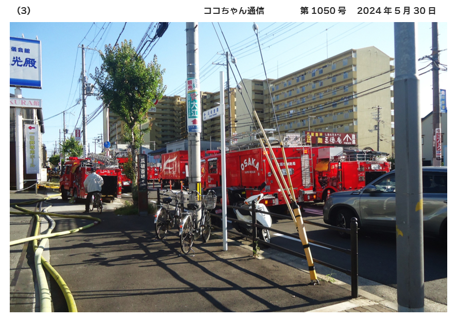 火災現場の報道陣=左から、YTV、NHK、ABⅭ(ザウルスちゃん撮影)