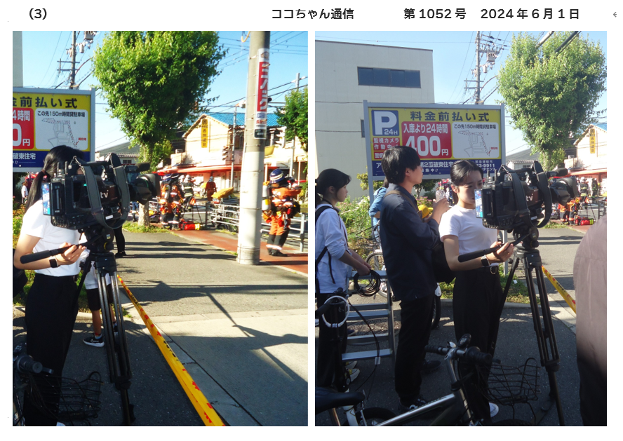 平野区瓜破の火災を取材撮影のytv女性カメラマン(ザウルスちゃん撮影)