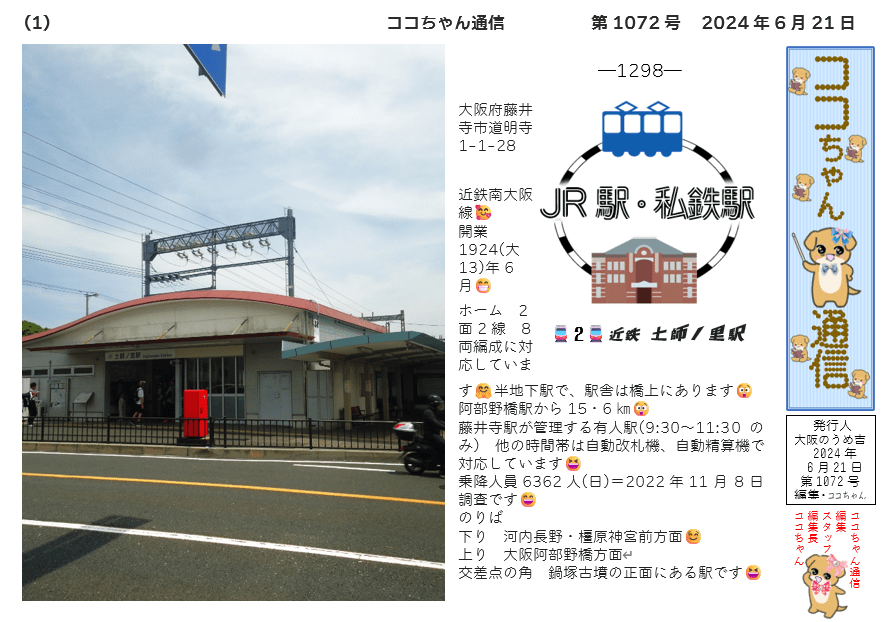 藤井寺駅が管理する有人駅(9:30~11:30のみ) 他の時間帯は自動改札機、自動精算機で対応しています😆