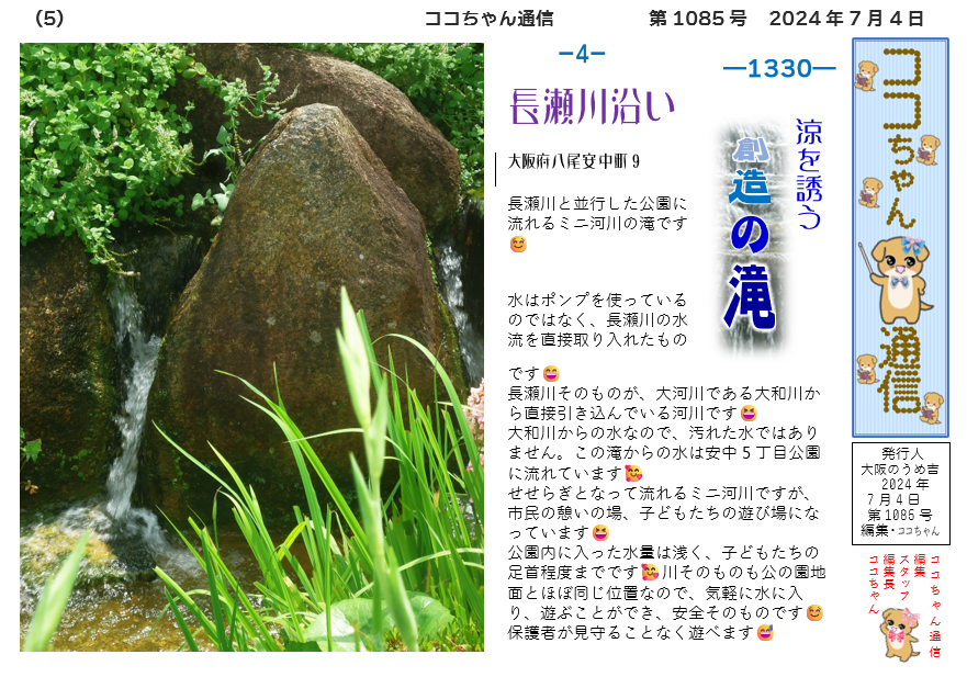 大和川からの水なので、汚れた水ではありません。この滝からの水は安中5丁目公園に流れています🥰
