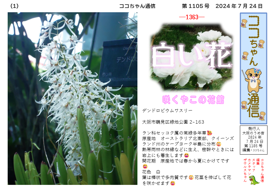 開花期 原産地では春から夏にかけてです😄 花色 白