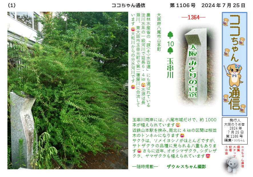 SS玉串川両岸には、八尾市域だけで、約1000本が植えられています😲