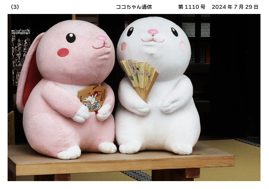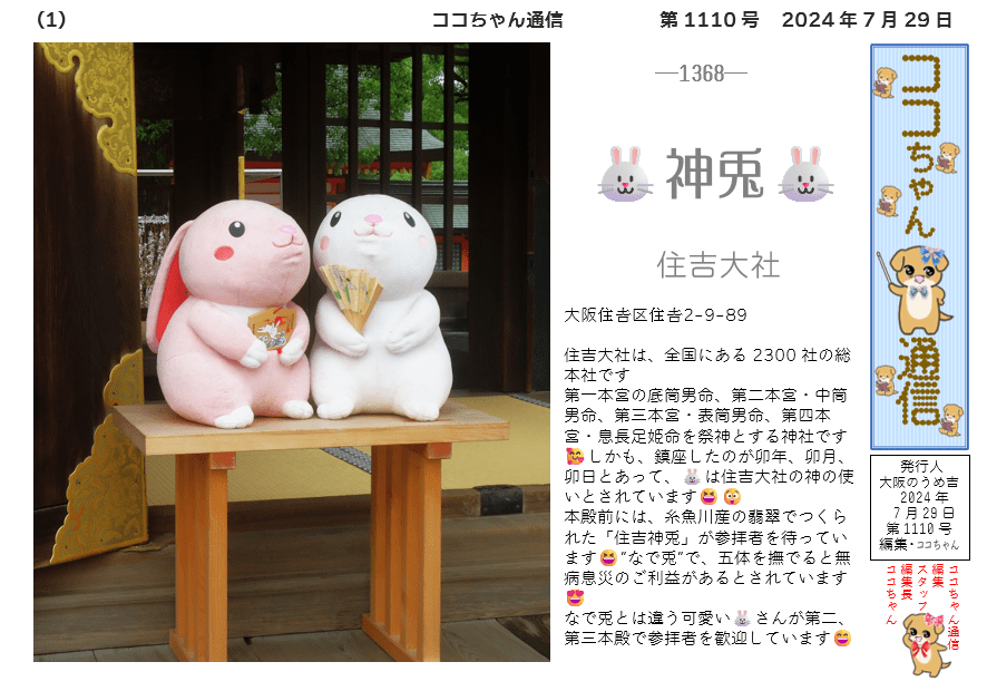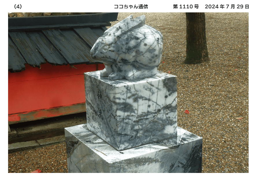 本殿前には、糸魚川産の翡翠でつくられた「住吉神兎」が参拝者を待っています😆”なで兎”で、五体を撫でると無病息災のご利益があるとされています😍