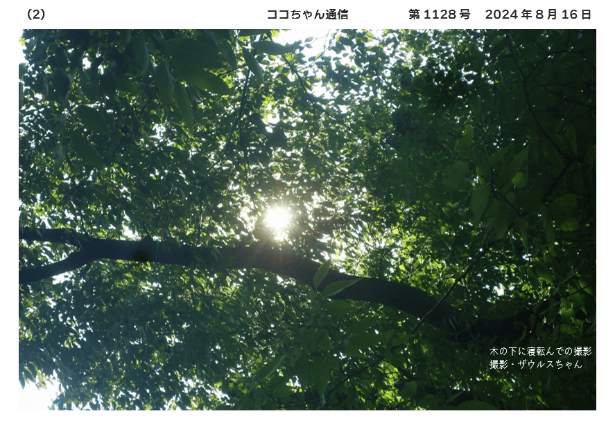 実は暑さに参って寝転んだところ、樹木枝葉の隙間からの陽光がとてもいい感じに見えたのでカメラを向けたのです😅