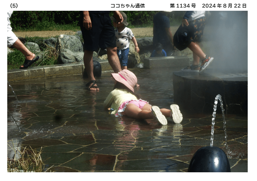 噴水が稼働する時間にはすでに子どもたちが集まっています😀お父さん、お母さんが付き添っています🤗