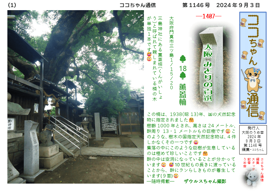 この楠は、1938(昭13)年、国の天然記念物に指定されました🤗