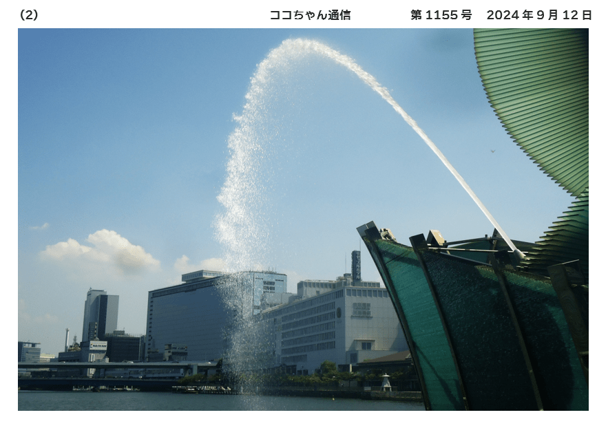 一筋の噴水ですが勢いはかなりのものです☺️大川に向かって噴き出す様は爽快です😆