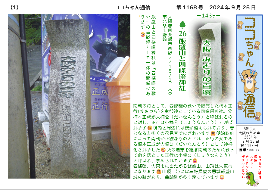 飯盛山と四條畷神社は「四條畷の戦い」の古戦場として一体の関係にあります 😲