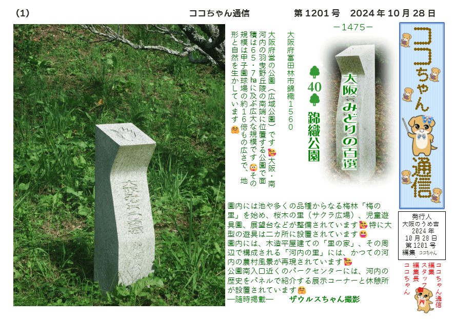 大阪府営の公園(広域公園)です 🥰大阪・南河内の羽曳野丘陵の南端に位置する公園で面積は65・7㏊に及ぶ広大な規模です 😲その規模は甲子園球場の約16倍もの広さで、地形と自然を生かしています 🤗