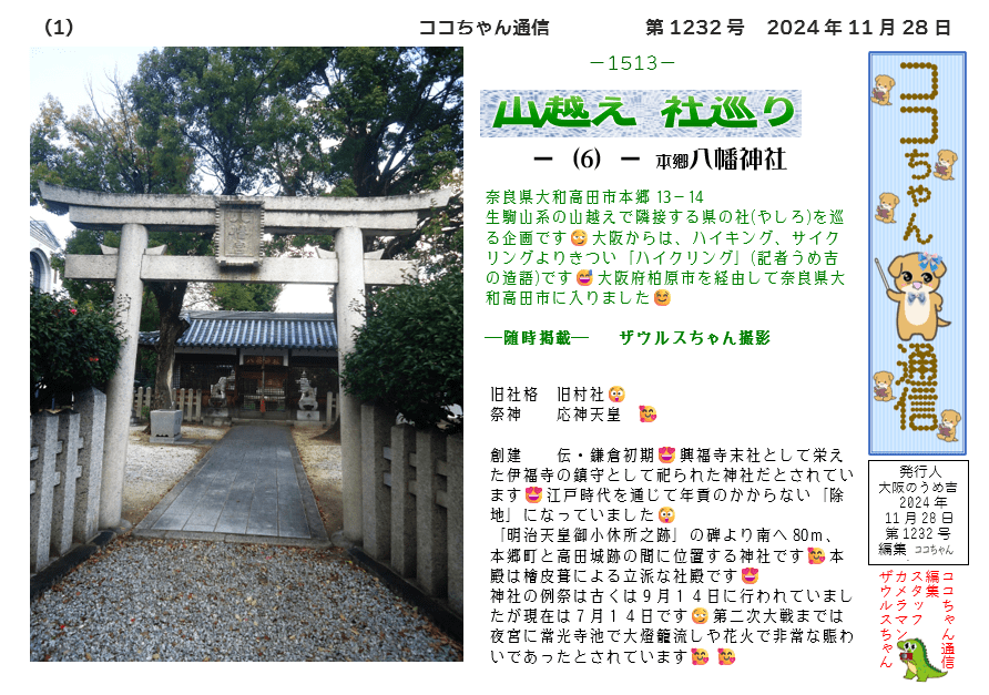 うわ~い、ココちゃんたち本郷八幡神社まで来たワン 😍