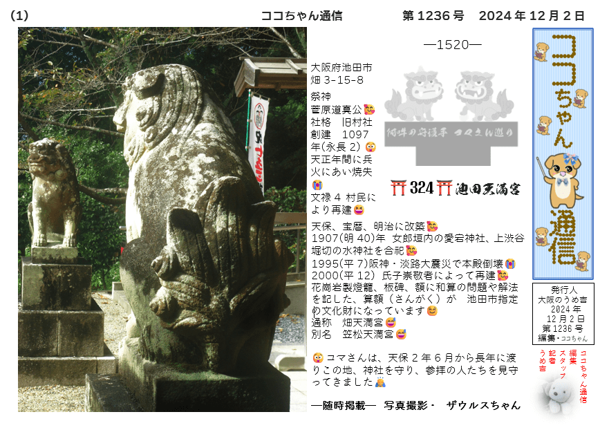 😲コマさんは、天保2年6月から長年に渡りこの地、神社を守り、参拝の人たちを見守ってきました🙇‍♂️
