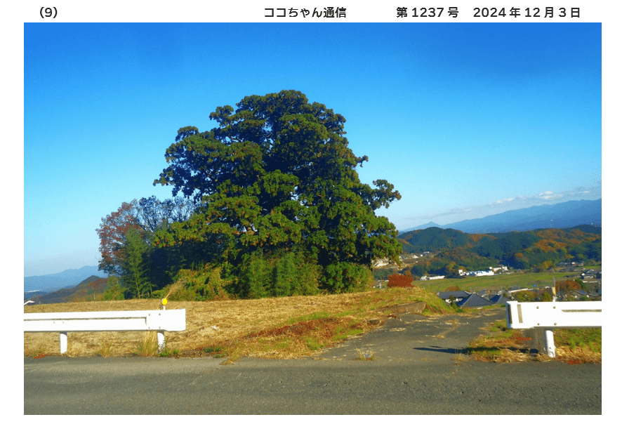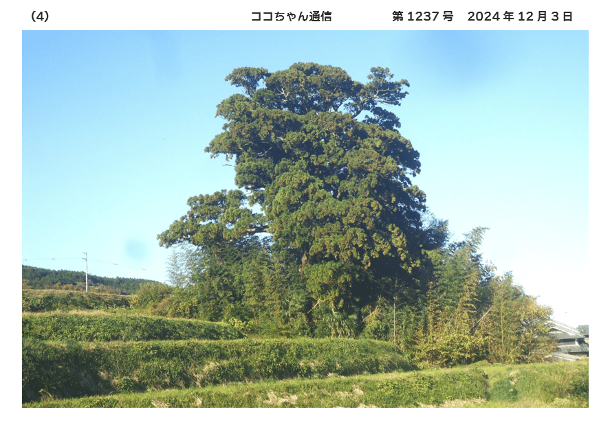 大川杉は、御所市西佐味(さび)の集落南端の大川神社跡地にあります 😁周囲6・59m、樹高約24m、枝張り約23m、樹齢はおよそ450年です 😍 県指定天然記念物です 🥰かつて水不足で苦しんでいた時、杉の根元から冷水が湧き出し人々を救いました 😆飲料水、灌漑用水となったのです 😍