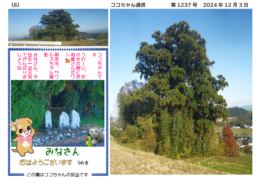 うわ~い、杉の木の側にお地蔵さんだワン 🥰