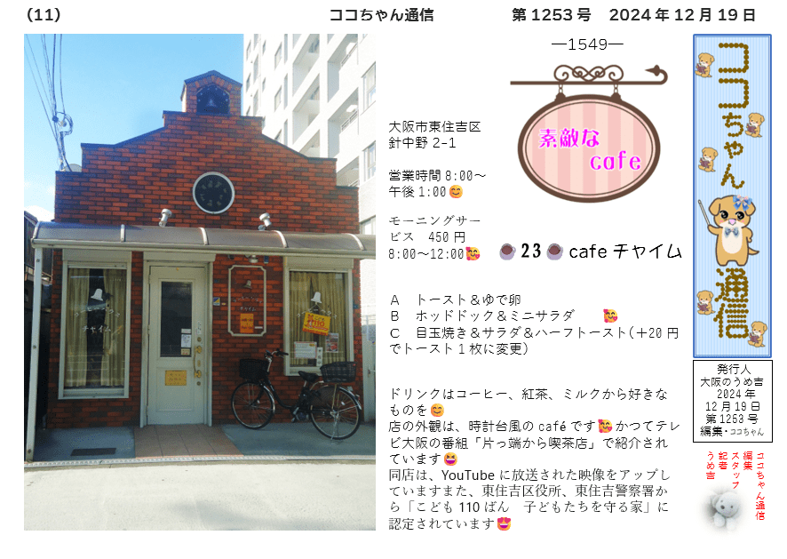 同店は、YouTubeに放送された映像をアップしていますまた、東住吉区役所、東住吉警察署から「こども110ばん 子どもたちを守る家」に認定されています😍