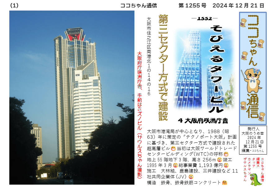 地上55階地下3階、高さ256m😲竣工 1995年3月😲総事業費1,193億円😲
