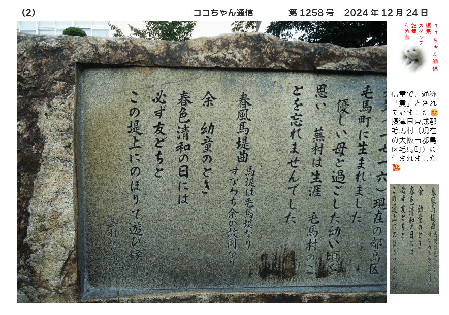 信章で、通称「寅」とされていました😊摂津国東成郡毛馬村(現在の大阪市都島区毛馬町)に生まれました🥰