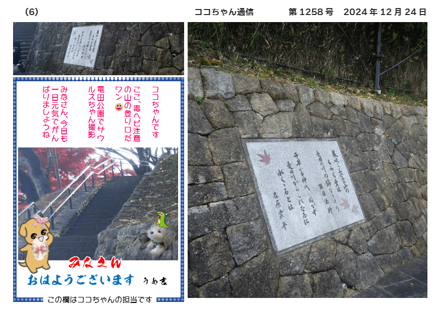 ここ、毒ヘビ注意の山の登り口だワン 😃