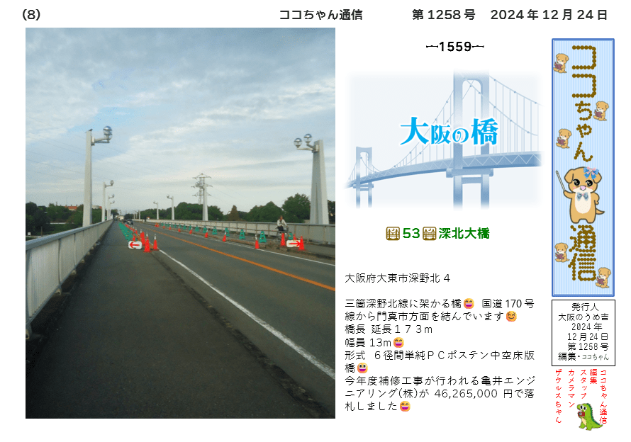 三箇深野北線に架かる橋😄 国道170号線から門真市方面を結んでいます☺️