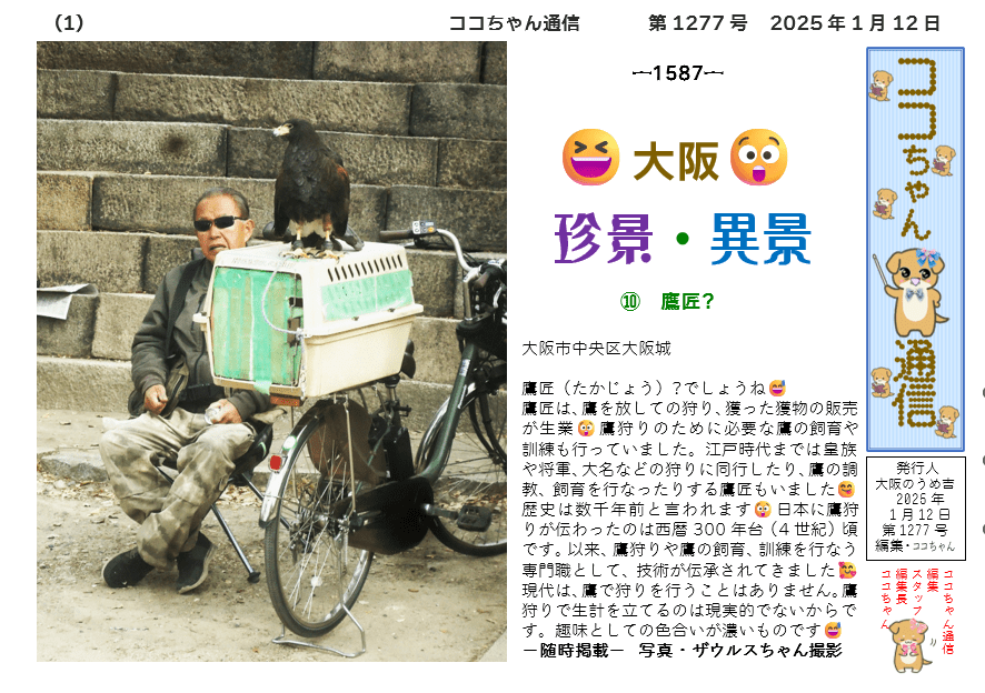 うわ~い、鷹匠さんだ、怖い鳥なのになついているワン 🥰
