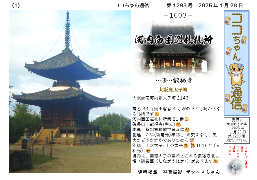 創建 724(新亀元)年(伝) 正史になく、史実かどうか定かでありません😅 別称 上之太子、上の太子🤗 🥰1615年(元和元)😉 境内に、聖徳太子の墓所とされる叡福寺北古墳(磯長墓〈しながのはか〉)があります🤗
