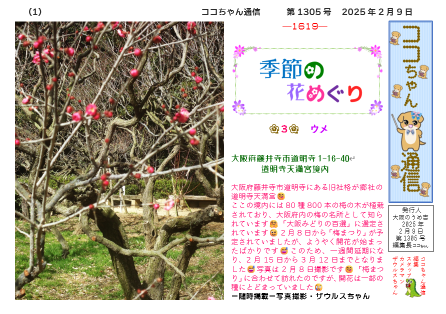 何日か前に道明寺天満宮のサイトを見たら開花情報が「咲き始め」とあり、さらに2月8日から「梅まつり」とあったので、「まつり」の初日に合わせて昨日行って来ました😅