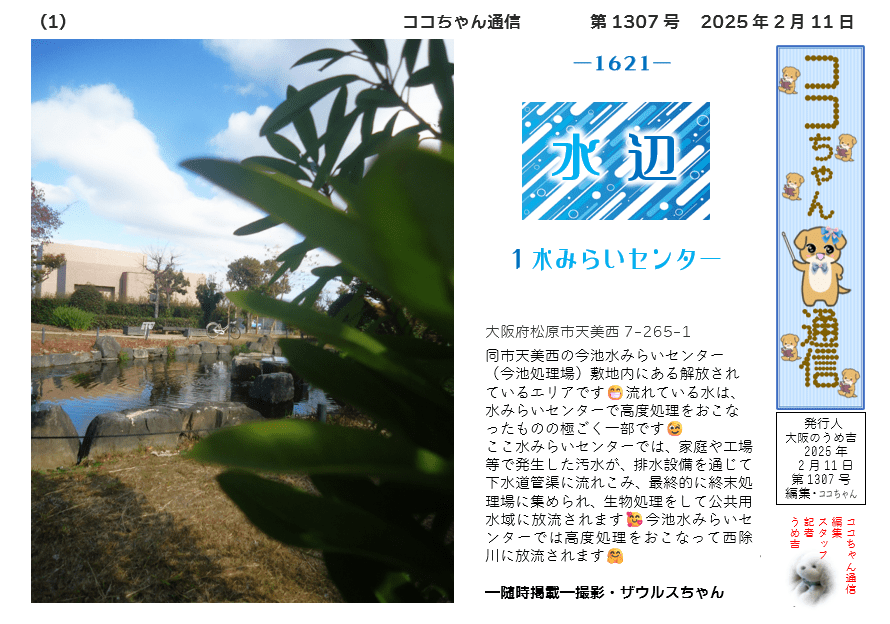 同市天美西の今池水みらいセンター(今池処理場)敷地内にある解放されているエリアです😁流れている水は、水みらいセンターで高度処理をおこなったものの極ごく一部です😉