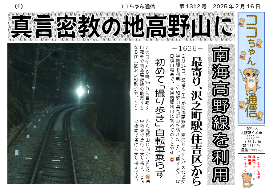 2月14日、記者うめ吉が南海高野線、南海りんかんバスなど交通機関を利用して和歌山県高野山を訪れました。「撮り歩き」は日頃自転車で。交通機関利用は初めてのことです 😆