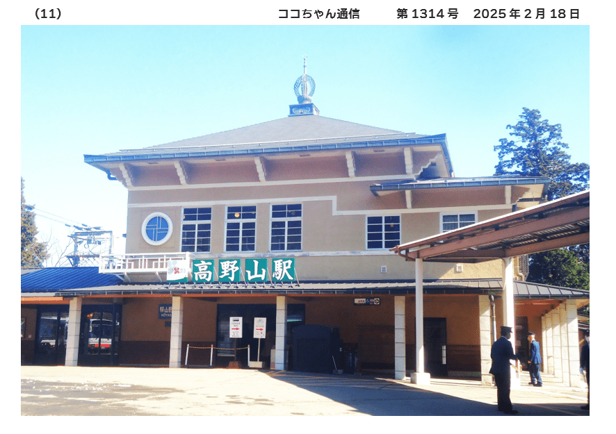 駅舎は1928年(昭3)完成の木造2階建てです😉洋風建築が基調の外観で、高野山の玄関駅にふさわしく頂上に宝珠を載せた寺院風の宝形造の屋根になっています😆