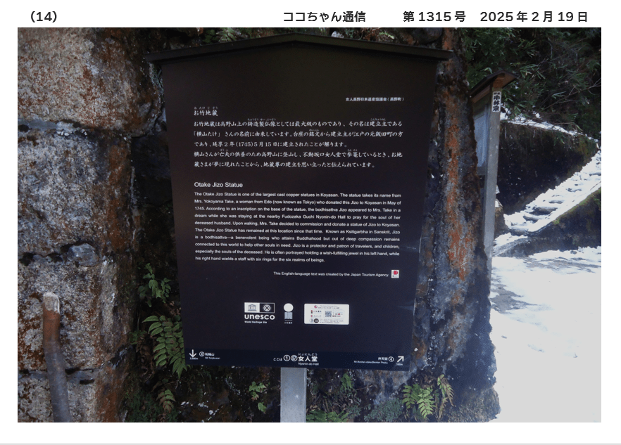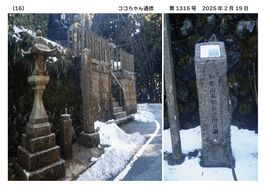 大門、弁天岳、奥の院に昇る朝日と沈む夕陽を見られるのがここ。女人堂の前の「お竹地蔵」の横にそのスポットへの上り道(14面写真の右側・積雪で登れませんでした)があります😆