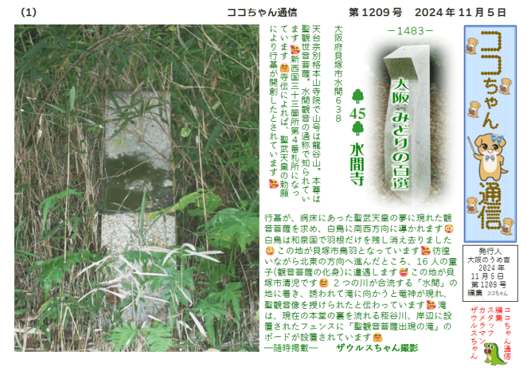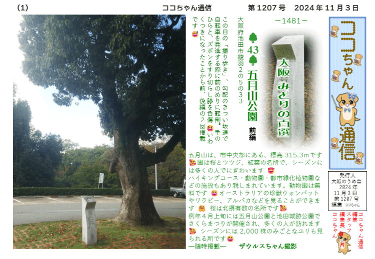 ココちゃん通信25-04-05 投稿者:大阪のうめ吉2025年4月5日カテゴリー:ココちゃん通信、大阪撮り歩記タグ:おおさか撮り歩き記、ココちゃん通信 第1347号 -1670- 大阪 みどりの百選 総集編 (8) 共有: クリックして X で共有 (新しいウィンドウで開きます) X Facebook で共有するにはクリックしてください (新しいウィンドウで開きます) Facebook いいね 読み込み中… 関連