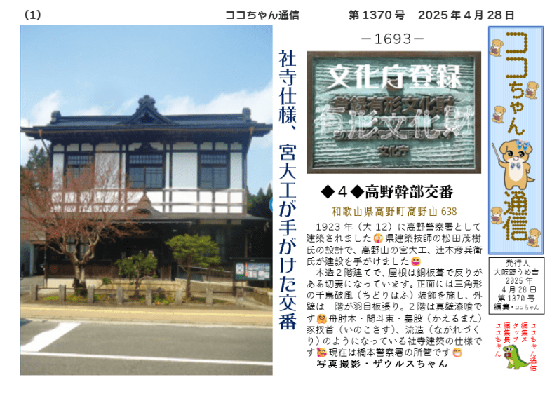 1923年(大12)に高野警察署として建築されました😲県建築技師の松田茂樹氏の設計で、高野山の宮大工、辻本彦兵衛氏が建設を手がけました😆