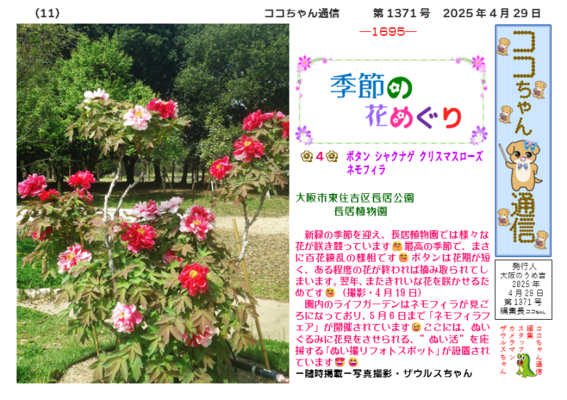 新緑の季節を迎え、長居植物園では様々な花が咲き競っています🤗最高の季節で、まさに百花繚乱の様相です😋ボタンは花期が短く、ある程度の花が終われば摘み取られてしまいます。翌年、またきれいな花を咲かせるためです😋 (撮影・4月19日)