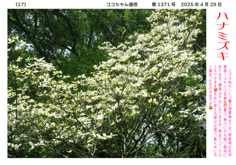 1912年、東京市長が友好の印として、ワシントンに桜の苗木を贈った返礼に、ハナミズキが日本に届けられました🤗これによって日本各地に広がりました。