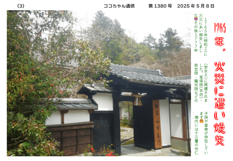 1765年(明和2)に火災にあい焼失しました😭その後1777年(安永6)に再建されました。宝塔院(本坊)・寂定院・龍光院などの子院や堂舎が存在しています🤗