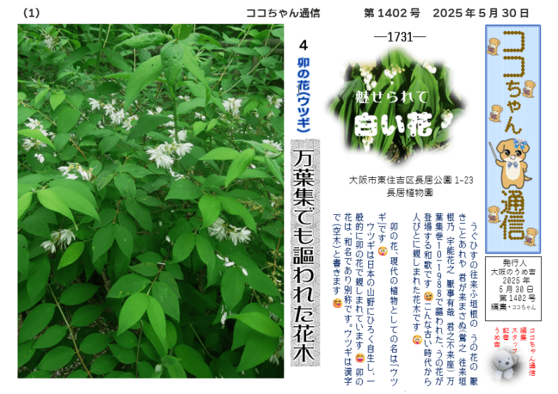 うぐひすの往来ふ垣根の うの花の 厭きことあれや 君が来まさぬ(鴬之 徃来垣根乃 宇能花之 厭事有哉 君之不来座) 万葉集巻10-1988で謳われた、うの花が登場する和歌です 😉こんな古い時代から人びとに親しまれた花木です 😲