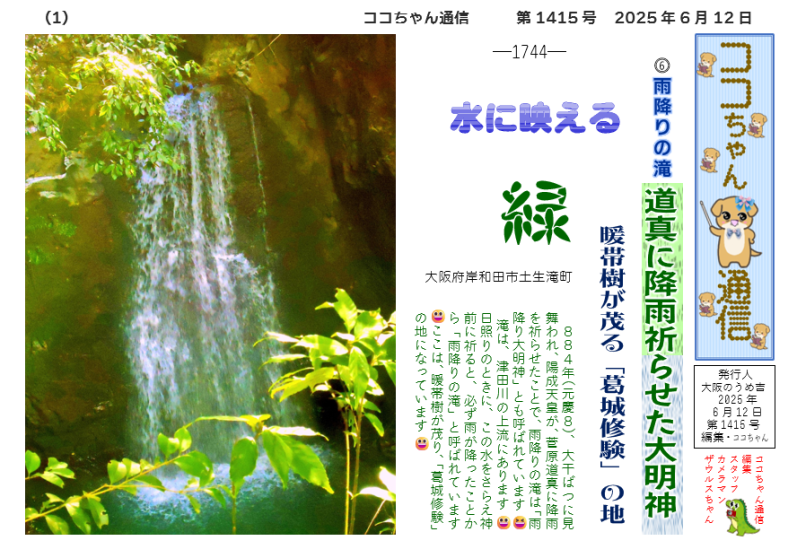 884年(元慶8)、大干ばつに見舞われ、陽成天皇が、菅原道真に降雨を祈らせたことで、雨降りの滝は「雨降り大明神」とも呼ばれています 😆