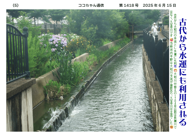 大和川分水築留掛かりとして、玉串川と共に農水省の「疎水百選」に選ばれている延長約14 キロメートルの淀川水系の一級河川です 🤗