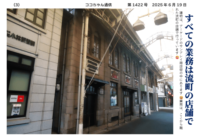建物は、アーケードのサンアレイ商店街の中にあります 😉業務は、ここから離れた流町の店舗で行っています 😄