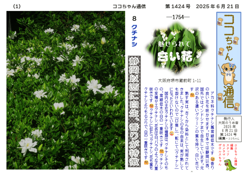 取り上げたのは堺市ですが、平野区ではメイン通りの一部に街路樹として植えられています🤗クチナシは香りが最高です😆花が終わっても濃いつやのある緑の葉がとてもきれいです😉