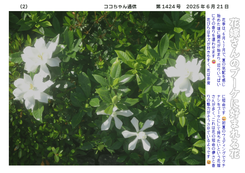 花びらはキズが付きやすく、花は非常に短命です 😢初夏のウェディングでクチナシをブーケにして持ちたいという花嫁さんが多く、これは花の短命の儚さと香りの魅力がそうさせているようです 😉