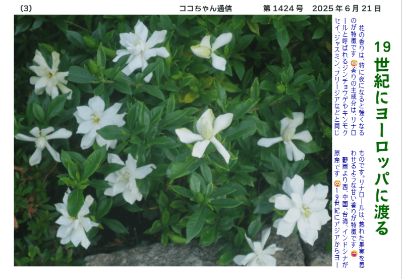 現在もクチナシの花の香りは人気があり、香水の原料に使われています。しかし、クチナシの花から香料を抽出するのは難しく、希少なので、多くは人工的に作られた香りが代用されています 😢