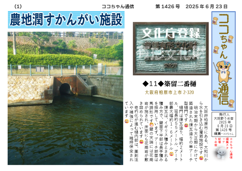 ここの築留二番樋は今でも現役🤗大阪では農家が減少したとはいえ、流域にある田畑を潤しています😃だからこそ、登録有形文化財だけでなく、「世界灌漑遺産」に認定されているのです😄