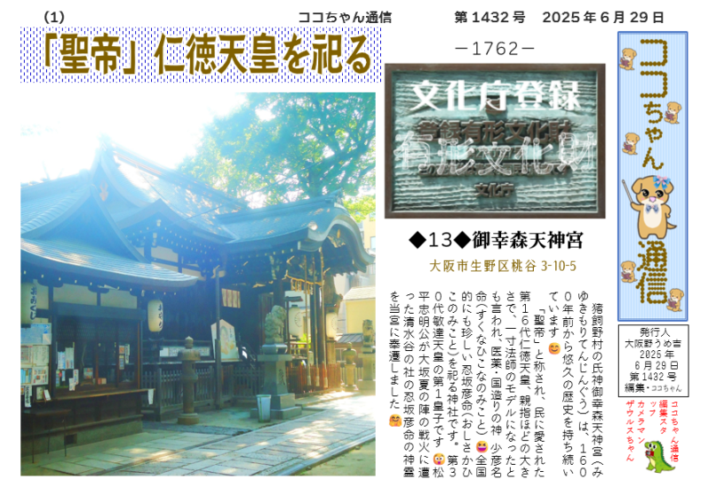猪飼野村の氏神御幸森天神宮(みゆきもりてんじんぐう)は、1600年前から悠久の歴史を持ち続いています 😊