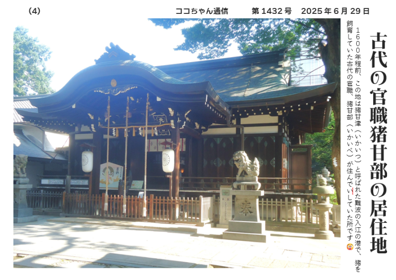 1600年程前、この地は猪甘津(いかいつ)と呼ばれた難波の入江の港で、猪を飼育していた古代の官職、猪甘部(いかいべ)が住んでいしていた所です 😲