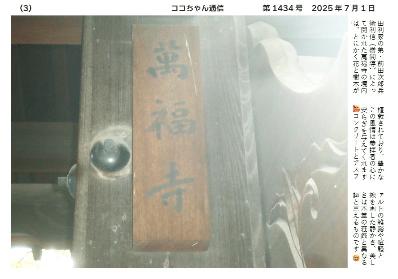 田利家の弟・前田次郎兵衛利信(僧開導)によって開かれた萬福寺の境内は、とにかく花と樹木が😲植栽されており、豊かなこの風情は参拝者の心に安らぎを与えてくれます 🥰コンクリートとアスファルトの雑踏や喧騒と一線を画した静かさ、美しさは本堂の荘厳と異なる趣と言えるものです 😉