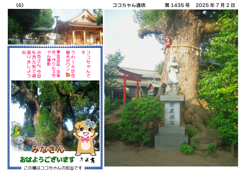 大阪のうめ吉様 おはようございます。楠の大樹ってよくありますよね。殺虫成分の樟脳が採れる木だからでしょうか・・・。近所にも和歌山県の天然記念物に指定されている十五社(じごぜ)の楠があります。☺️
