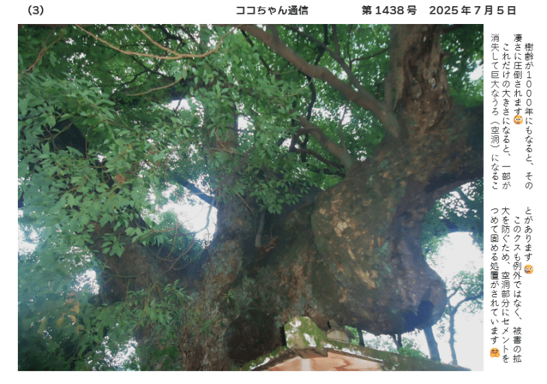 樹齢が1000年にもなると、その凄さに圧倒されます😲これだけの大きさになると、一部が消失して巨大なうろ(空洞)になることがあります 😢