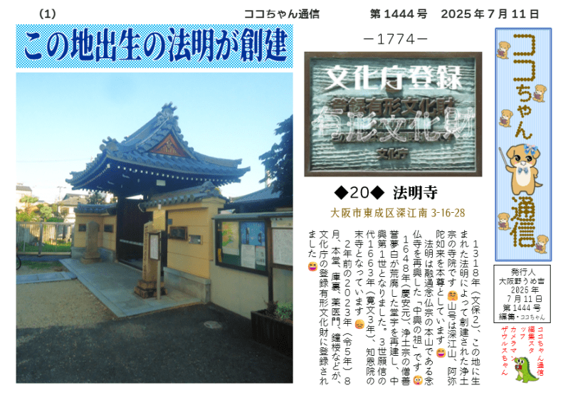 1318年(文保2)、この地に生まれた法明によって創建された浄土宗の寺院です 🤗山号は深江山、阿弥陀如来を本尊としています 😄 法明は融通念仏宗の本山である念仏寺を再興した「中興の祖」です 😲