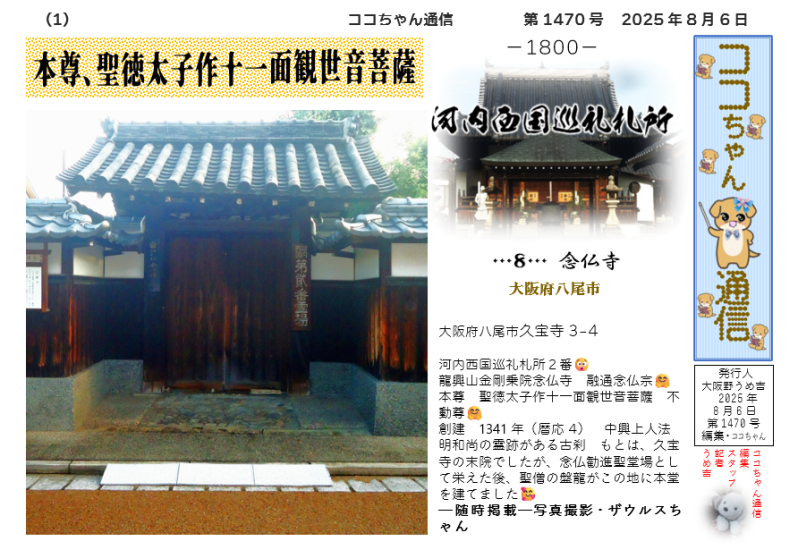 龍興山金剛乗院念仏寺 融通念仏宗🤗 本尊 聖徳太子作十一面観世音菩薩 不動尊🤗